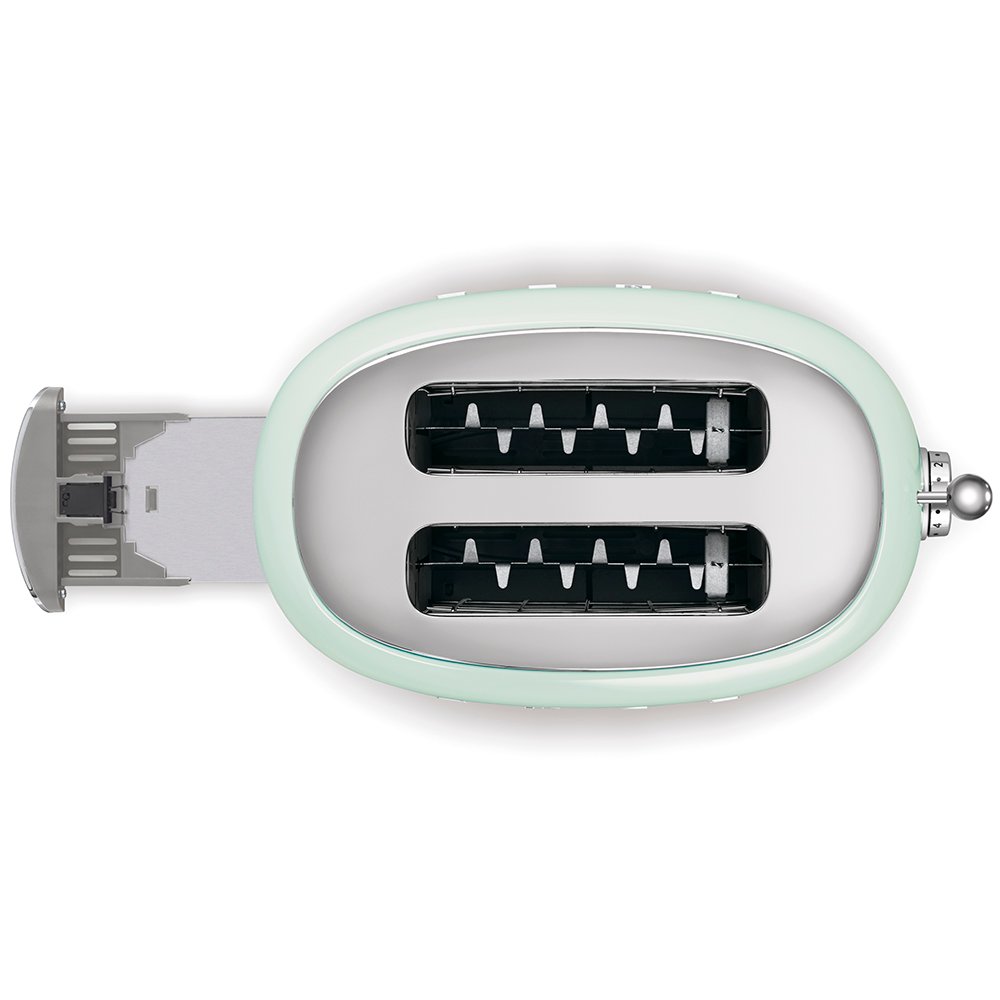 Self-centering racks in the compartments to ensure even toasting of slices of bread, whatever size they may be.