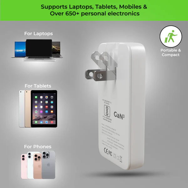 | Included in Box | Main Charger (Flat Pins) + 4 Universal Plug Adapters + Instruction Card |
