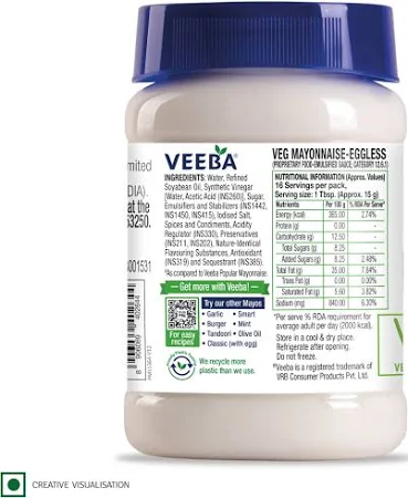 • Description: Creamy, vegan, and 55% lower in fat than Veeba popular mayo!